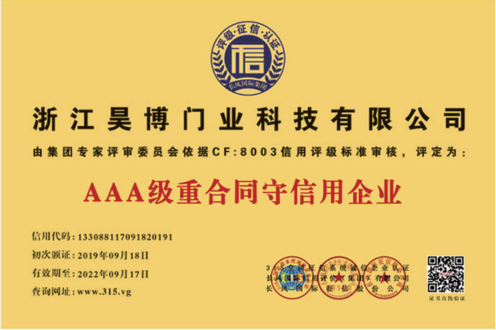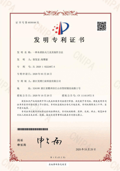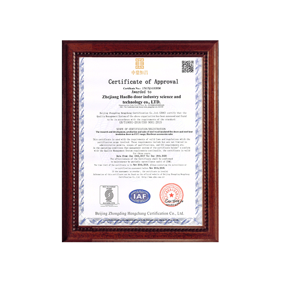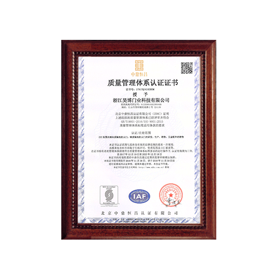 公司一直以來嚴格執(zhí)行ISO9001質量體系和ISO14001環(huán)境管理體系標準,建立了完備的科研、開發(fā)、生產、銷售服務體系。公司是浙江省門業協會會員單位,江山門業協會理事單位,中國木材與木制品流通協會會員單位,江山市消防協會副會長單位。